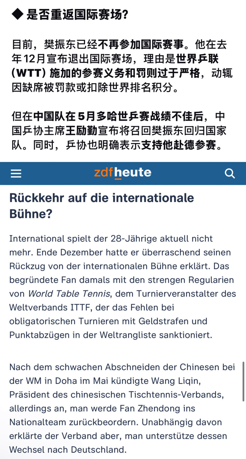 北京时候6月7日2024年太阳城娱乐龙虎斗,德国媒体针对“樊振东加盟德甲联赛球队萨尔布吕肯”,表现了一则搬动乒坛的重磅音问:在中国队在5月多哈世乒赛战绩欠安后,中国乒协主席王励勤已认真调回樊振东追忆国度队,同期全力守旧其加盟德甲劲旅萨尔布吕肯俱乐部!这一对向有计议被外界视为王励勤上任后的政策性布局,旨在为国乒男队备战2028年洛杉矶奥运会注入强心剂